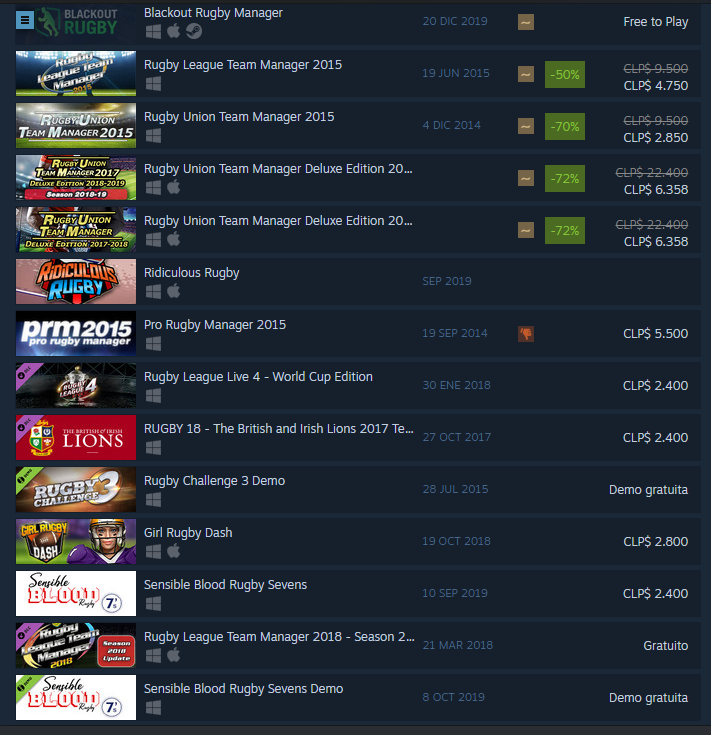 Les presento los video juego de HB studios, que además es el juego oficial de la Rugby World Cup 2015 y Rugby15 donde tienes la Premiership, Pro 12, Pro D2 y el Top 14.