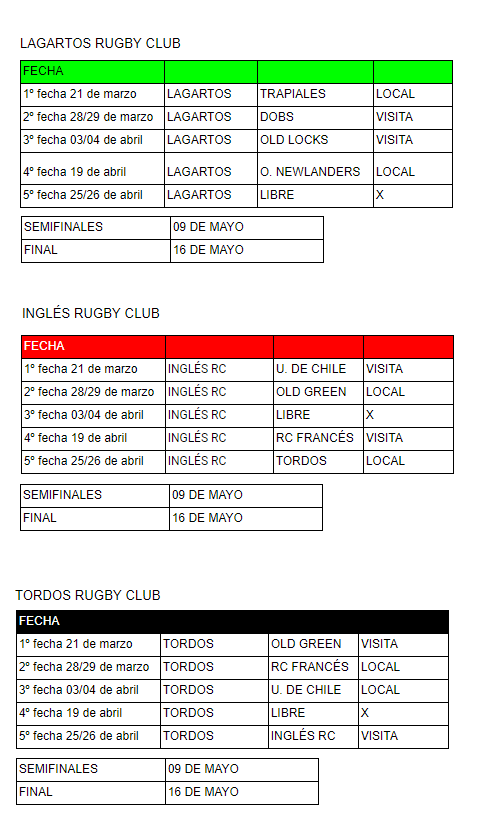 A continuación les dejo el fixture de los equipo regionales.